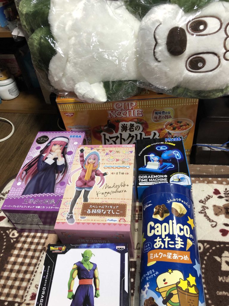 うーん、ちょっと攻略に手こずった台もあって、最後にトライしたフィギュアが一万円内で取れなかったのが痛い( ´Д`) もう少し上手く台選んで攻略出来たら10は越えれたかも。。。最近UFOキャッチャーから遠ざかっちゃった腕が落ちたのもあるかもですね。。。全然まだまだUFOキャッチャーは好きなので、精進して行きたいですね٩( ᐛ )و
